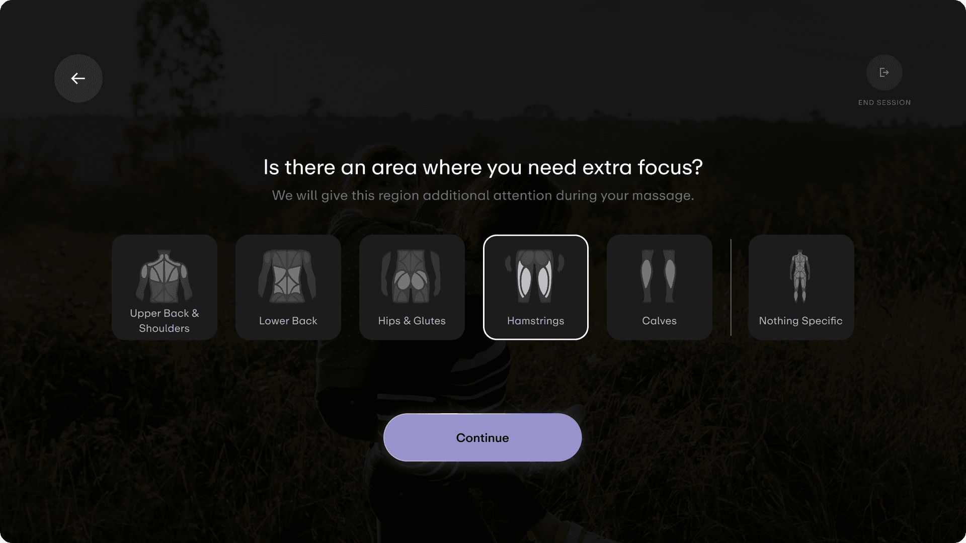 Pick your trouble spot from five options: upper back and shoulders, lower back, hips & glutes, hamstrings, or calves. Aescape will dedicate extra time there toward the end of your session, when your muscles are warmed up and ready for deeper work.